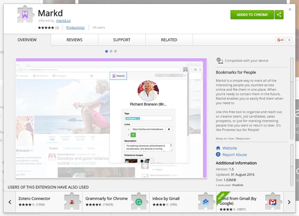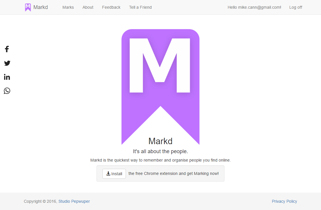 Quite simply its a Chrome Extension and website that allows a user to quickly and easily bookmark people you come across on the internet. In Brandons own words: