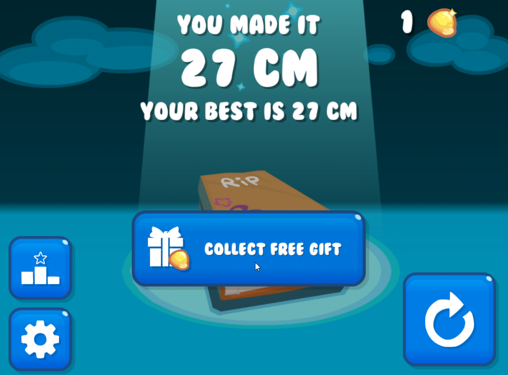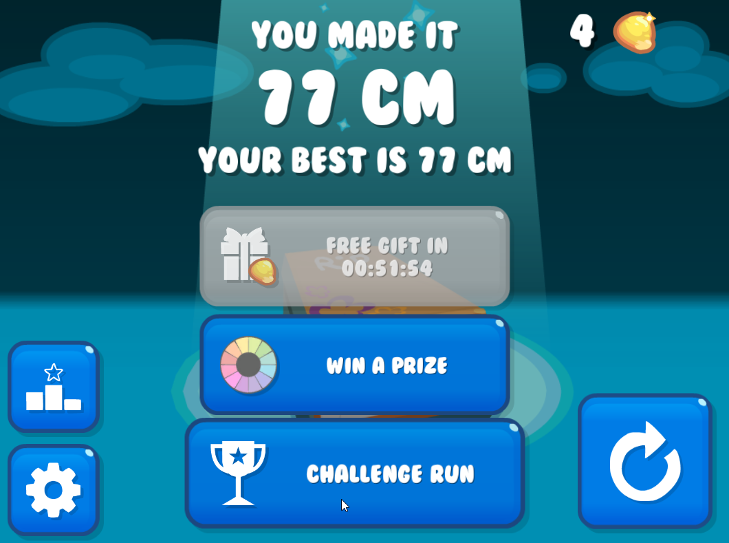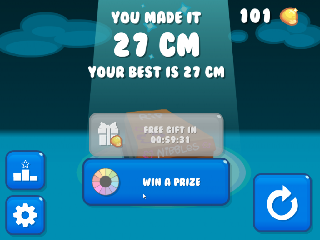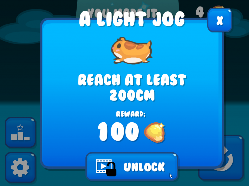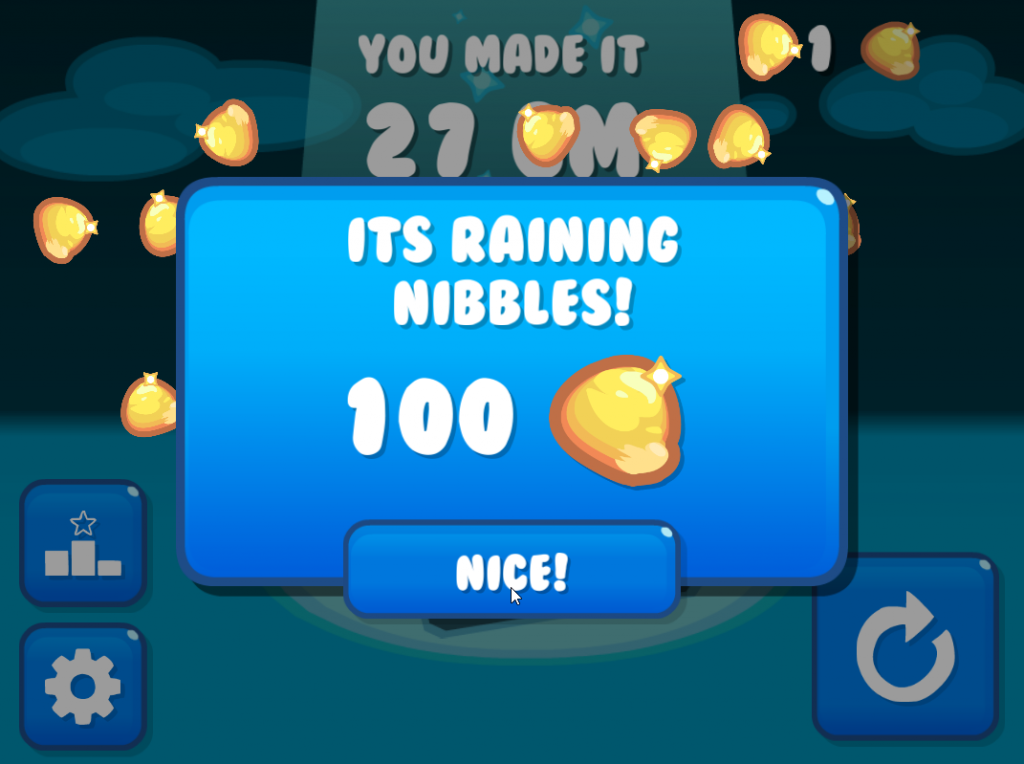 So the player is given an explicit challenge, in this case reach at least 200cm, and they are given a reward. To unlock it they must watch a video but its totally optional, so if they dont want to watch a video and earn some nibbles then they dont have to.