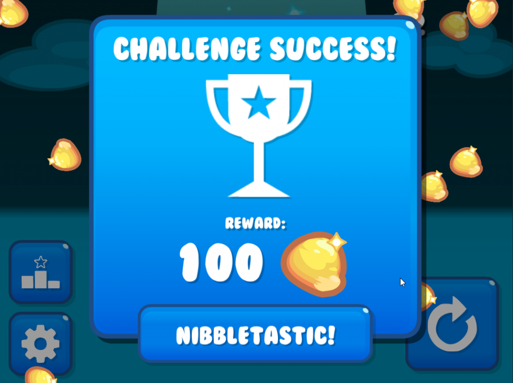 At the moment there is only one type of challenge; "distance run", but I hope to have more types before the game launches. Some ideas are "fruit collection" where the player must collect a certain number of special nibbles (that are placed in strategic positions).