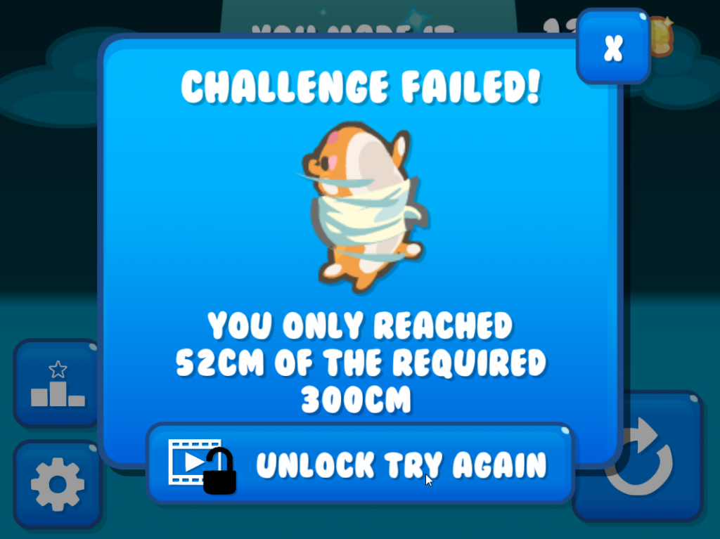 If the player fails the challenge then they are given the option to retry (by watching another ad):