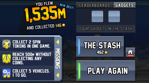 I struggled for hours last week to come up with a way to do this. I really liked the way "Jet Pack Joyride" has missions which encourage you to go back and keep playing so you can complete a mission: