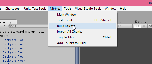 I know that the levels are going to have large numbers of certain types of objects such as spiders, nibbles and level tiles, so what I decided to do was record the unique properties for each instance of the objects such as their position, rotation, sprite type etc. I could then delete those objects from each chunk.