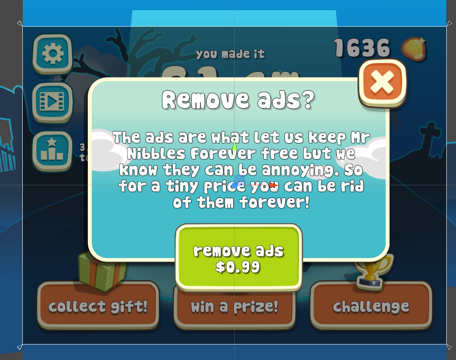 A few people had suggested to me that it would be good to add a "remove ads" option to the game as many people would be happy to remove the ads for a small fee. Well it wasnt a huge amount of work to do it so I put it in.