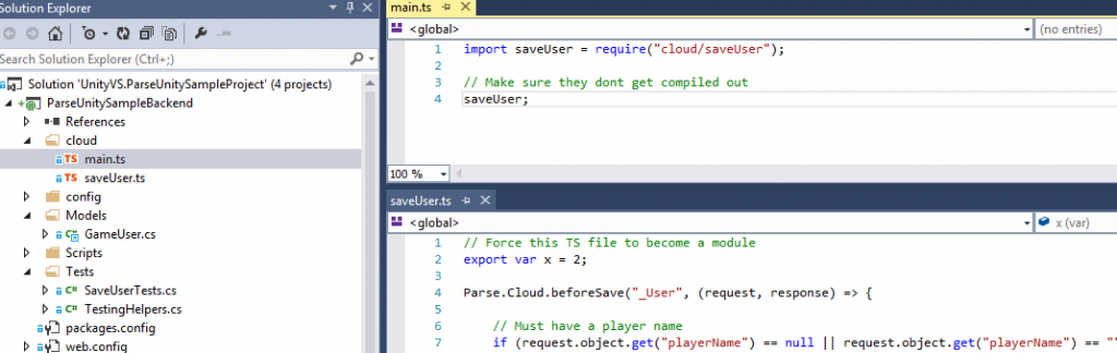 I have talked a lot in the past about my love for Typescript and so I love to use it whenever I can. Parse lets you run Javascript code on the server so I use Typescript that compiles to Javascript. To get it to work I first create a Typescript project that has been setup with CommonJS as the module system: